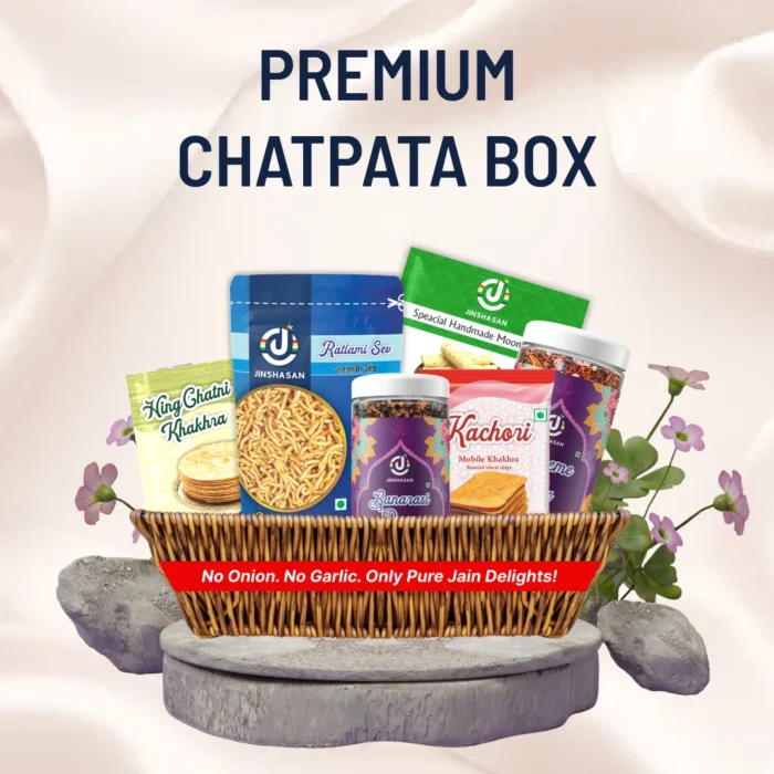 Celebrate the festival of lights with a truly indulgent and thoughtfully crafted gift—Premium Chatpata Box. This box is packed with crunchy Ratlami Sev, flaky mini Kachoris, and flavour-loaded Hing Khakhras, all made with 100% Jain ingredients. Add in the refreshing Banarasi Pan, sweet Mukhwas, and perfectly roasted Papad, and you’ve got a celebration of chatpata goodness in every bite. It’s not just a snack box—it’s a heartwarming experience, perfect for sharing the taste of home and tradition with your loved ones.